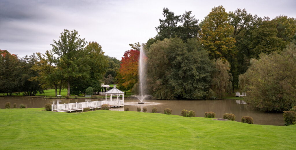 Niché au cœur de la forêt de Rambouillet, à La Boissière-École, le Domaine de la Butte Ronde est un lieu qui m’a immédiatement séduit. Le cadre est champêtre et généreux, une cour d’honneur avec fontaine, un haras, un parc arboré avec étang, et surtout une île au centre du domaine, reliée par un petit pont en bois, où peuvent se tenir les cérémonies en extérieur.
